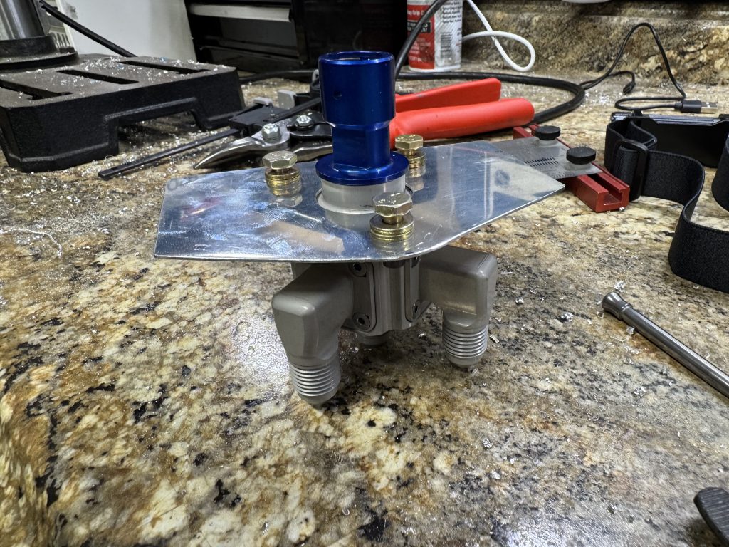 I ended up wasting a bit of time tonight by not using the right tools. I tried to be precise by hand and that was a terrible idea. Ended up wasting an hour. But I went the second time around using the drill press and other items and got it spot on. Now tomorrow I just need to drill 6 #30 holes for rivets for this custom plate and then I need to grind a small portion away where the bolts will go so they will seat properly. Then prime it and rivet it in and mount the valve. Then I have to turn my attention to the cover plate and mounting that in the proper spot as well. Luckily there is a bit of fudge in that component but I have the valve in the identical spot down to a 32nd of an inch where the old valve was so I don’t believe I’ll need that much of a fudge number. The image in the slideshow below where it is finished is what I’m roughly shooting for. I wanted to keep the same bracket just so I could be more accurate in my placement as well as even stiffen that area up some more.