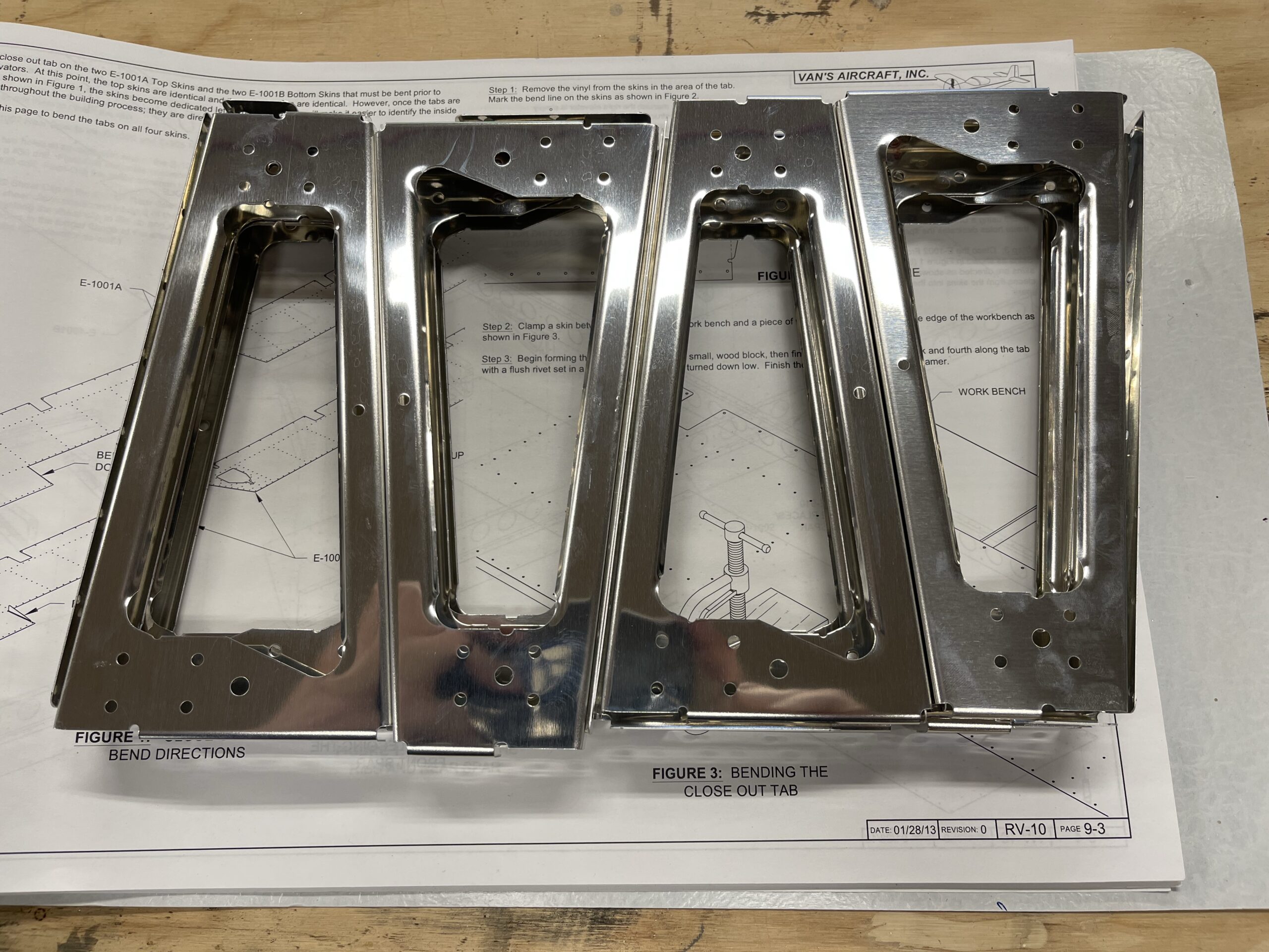 I got quite quite a bit of clecoing done today as well as a little bit of the match drilling. The coolest part was doing the tab bends on the E-1001A & B skins. Using the mushroom bit in the rivet gun worked like a champ on getting those bends Read more