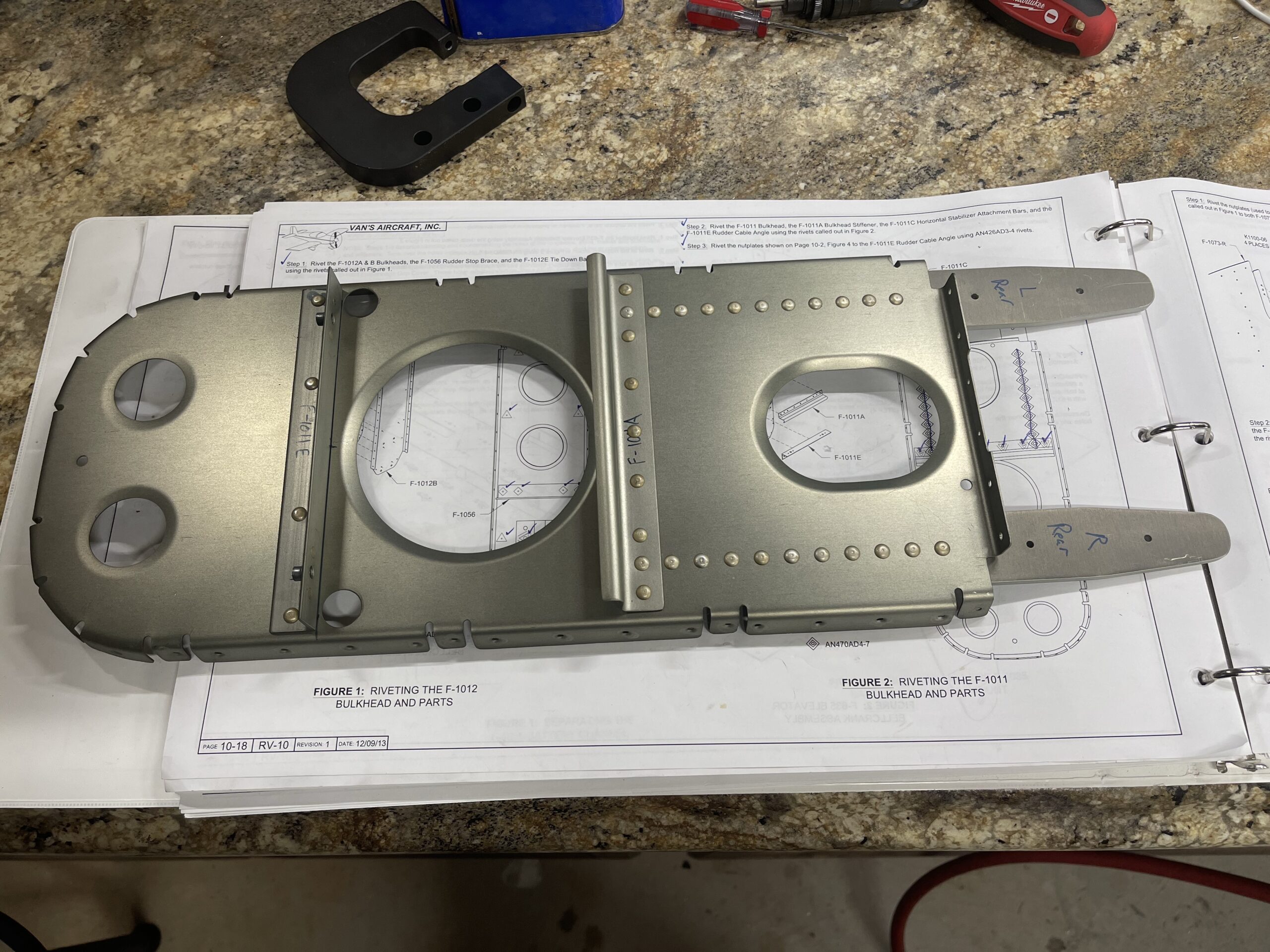I only had a small amount of time tonight and then it’s going to be a week and a half to two weeks before I can get back to this since we are going on vacation. I finalized the rear deck and I loaded all of the rivets into the Read more
