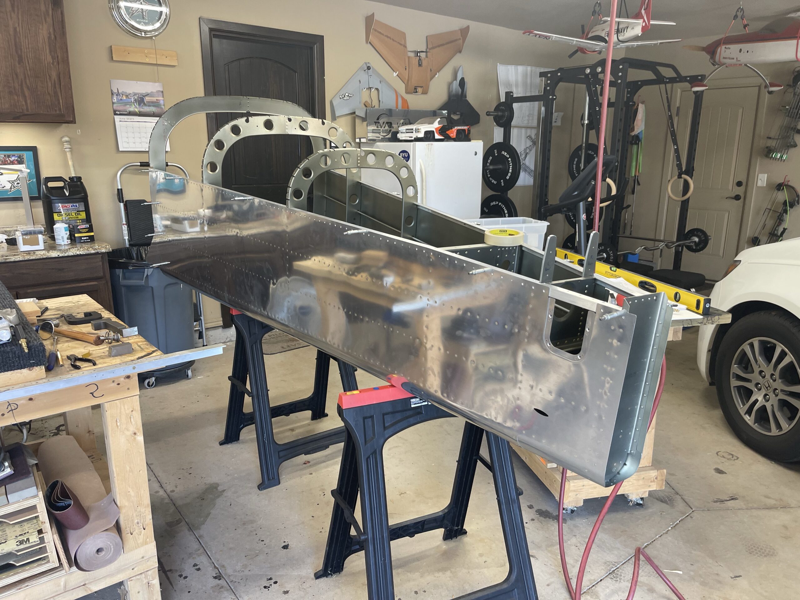 Spent most of the day today getting these rivets done. Got my son Brendon involved who did a good job at running the rivet gun. Luckily we both have a music background so we based his count on 1.5 beats at 60 bpm. LOL